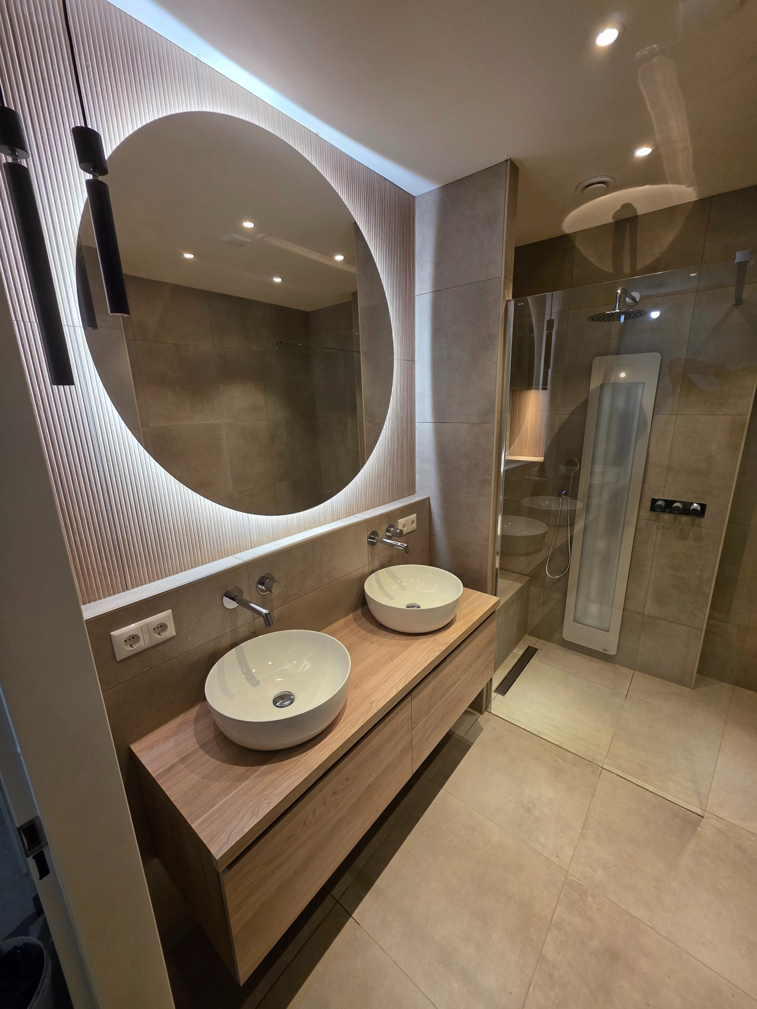 Een plek waar je de dag begint én afsluit met een goed gevoel. In Veendam realiseerden we deze moderne badkamer en toiletruimte, waar strak design en warme materialen samenkomen voor ultiem comfort.
